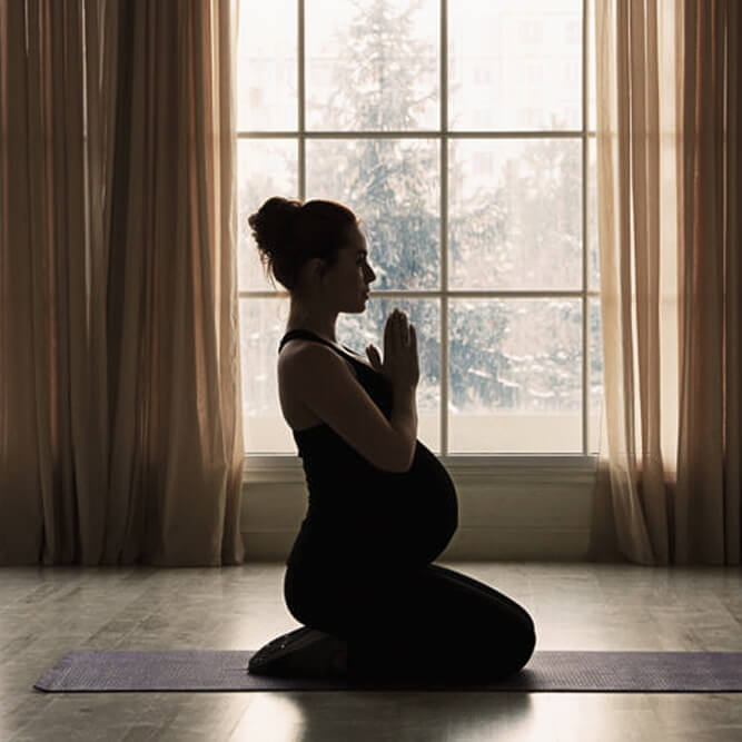 Nurture yourself by practising Pregnancy Yoga and breathe out the discomfort.